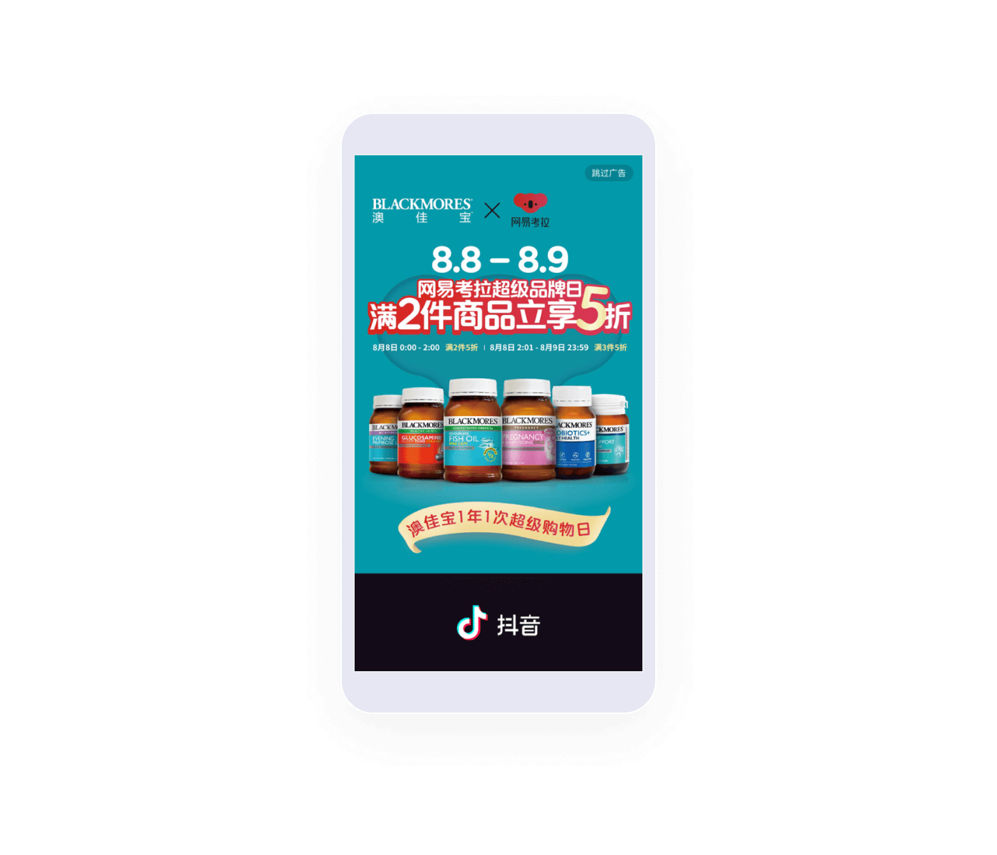 廣告在抖音App啟動(dòng)時(shí)進(jìn)行展示,開(kāi)機第一入口,視覺(jué)沖擊強,強勢鎖定新生代消費主力。