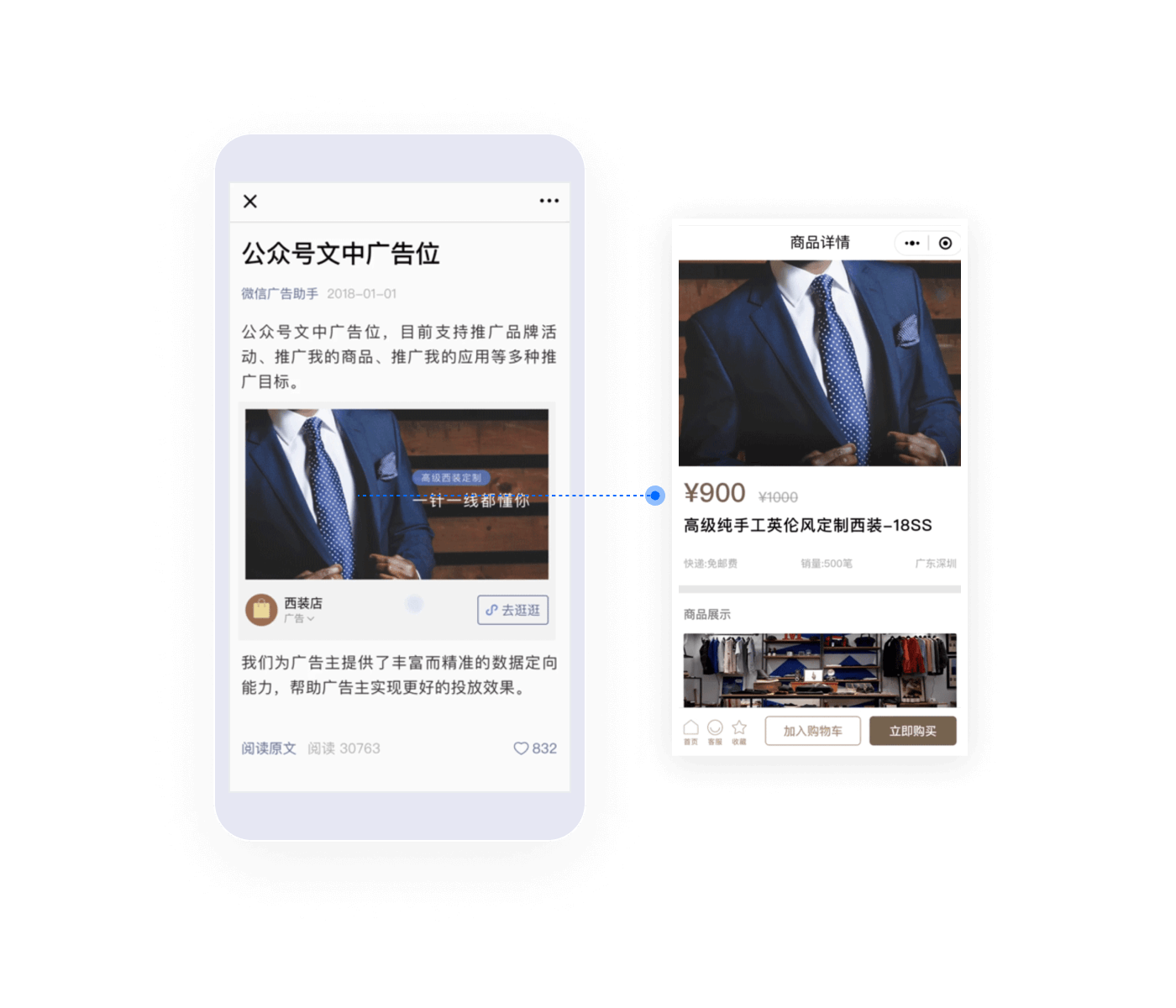 是基于微信公眾平臺生態(tài),以類(lèi)似公眾號文章內容的形式在包括文章底部、文章中部、互選廣告和視頻貼片等四個(gè)廣告資源位進(jìn)行展示的內容廣告。