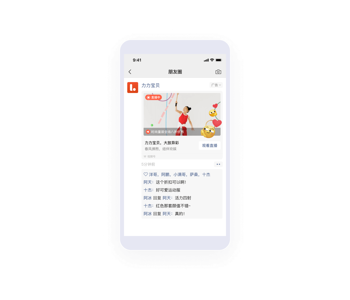 視頻號原生廣告提供沉浸式原生視頻體驗,幫助品牌在新品上市、節日營(yíng)銷(xiāo)、代言人官宣等營(yíng)銷(xiāo)場(chǎng)景,更好地進(jìn)行產(chǎn)品呈現和理念表達